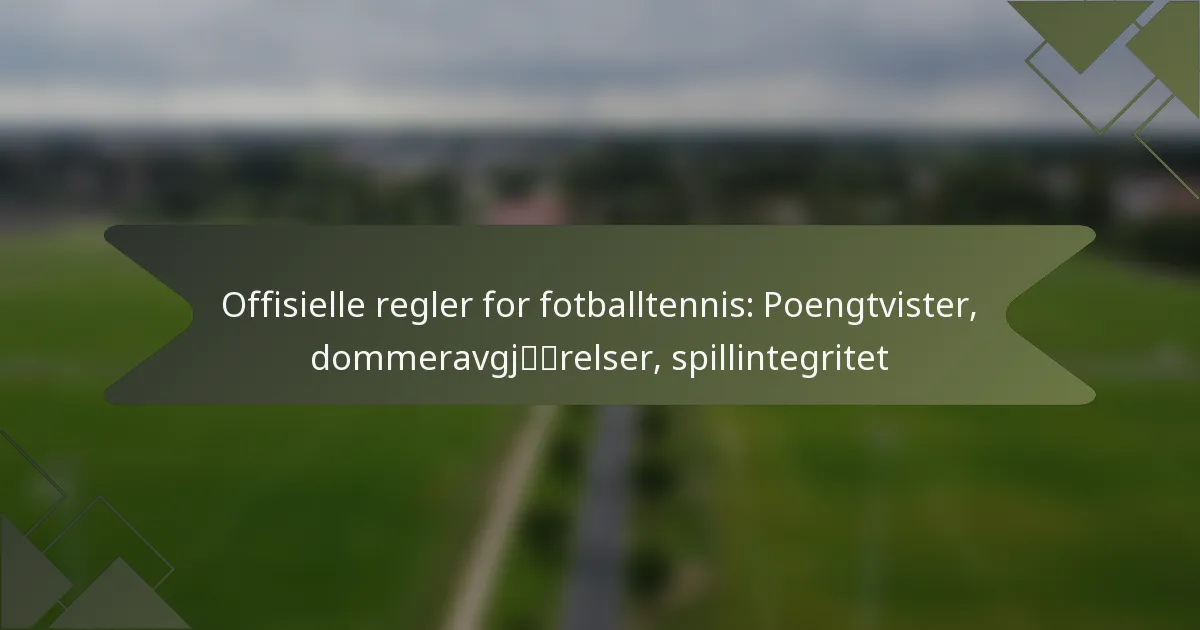 Fotballtennis er en engasjerende sport som kombinerer ferdighetene fra fotball og tennis, og krever at spillerne bruker føttene til å sende en ball over et nett på en bestemt bane. Integriteten til spillet avhenger av klare regler angående poengtvister og autoriteten til dommerne, som sikrer rettferdig spill og opprettholder de etablerte forskriftene. Effektiv kommunikasjon mellom spillere og dommere er avgjørende for å løse konflikter og opprettholde en konkurransedyktig atmosfære.
