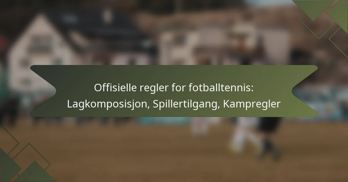 Kampreglene i fotballtennis regulerer hvordan spillet spilles, inkludert lagets sammensetning, spillerberettigelse og de spesifikke forskriftene som dikterer spillingen. Å forstå disse reglene er essensielt for både spillere og dommere for å sikre fair play og konkurransens integritet.